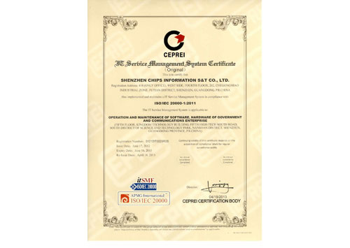 IT服務(wù)管理體系認(rèn)證證書(英文)